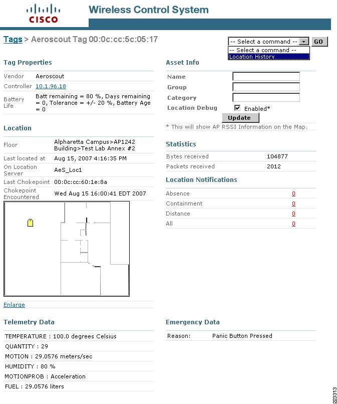 While each tag vendor is responsible for determining the precise set of capabilities they choose to include in their product offering, the Cisco Compatible Extensions for Wi-Fi Tags specification provides for high-priority information to be uniformly included in the tag content field. This information is passed to the location appliance along with the tag MAC address, and can be used by location clients (such as WCS) to indicate that a high-priority tag event has taken place.