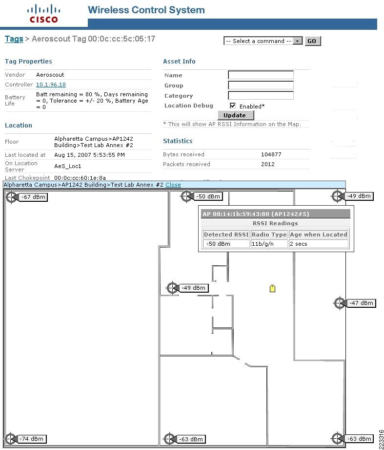 Access points forward information to WLAN controllers regarding the detected signal strength of any WLAN clients, asset tags, rogue access points, or rogue clients. In normal operation, access points focus their collection activities for this information on their primary channel of operation, going off-channel and scanning the other channels in their regulatory channel set periodically. The collected signal strength information is forwarded to the WLAN controller to which the access point is currently registered, which aggregates the information. The location appliance uses SNMP to poll each controller for the latest signal strength information for each tracked category of device. In the case of a location tracking system deployed without a location appliance, WCS obtains this information from the appropriate controller(s) directly.