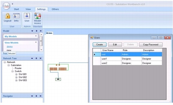The Administrator role is for super users of the CGDS - Substation Workbench. Users who log in under this role will have access to the CGDS design features including User Creation and Model Access.