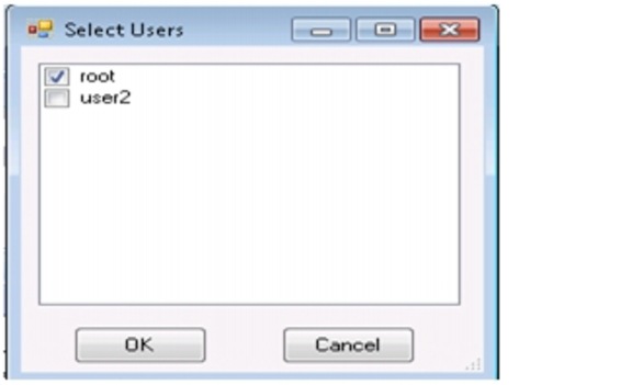 From the Manage Model Access list, CGDS Administrators can influence which users may access the selected model by using the Select Users window. After selecting the boxes for the desired user or users, confirm by clicking the OK button. Abandon changes by clicking Cancel.