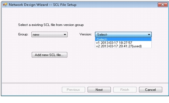 Clicking on the Network Design Wizard will open the SCL file group and its version selection window.Opening the SCL File Group and Version Selection Window