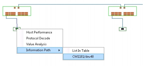 Information about the connections between network elements can be discovered by right-clicking various elements in the network. Use the context menus that arise as guides.