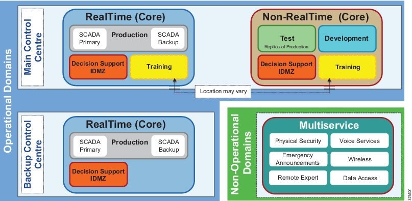 The Control Center consists of operational and non-operational domains (Figure 1-5), which are divided into secure zones based on IEC 62443-3-3, Functional Requirement (FR) 5, Restricted data flow. This segments the control system architecturally via zones and conduits to limit the unnecessary flow of data.