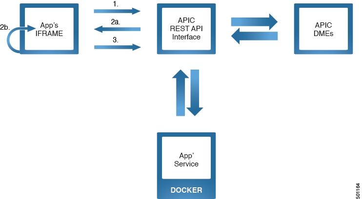 If the app is inserted as part of the APIC’s UI, the admin or user can navigate to the specific section in the APIC UI and