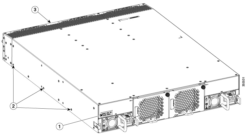 The rear of the Cisco MDS 9396T switch also contains the grounding point which is located under a label.