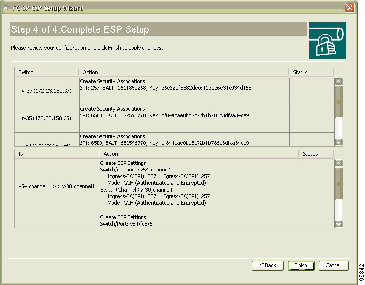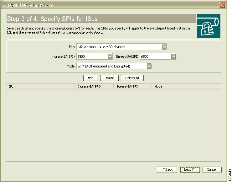 You can configure and set up link-level encryption between switches, using Fabric Manager. You can configure an existing Inter-Switch Link (ISL) as a secure ISL or edit an existing secure ingress SPI and egress SPI using this wizard.