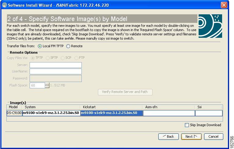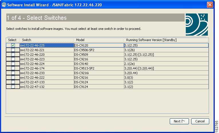 Automatic—You can use the Fabric Manager Software Install Wizard for Cisco MDS NX-OS switches as described in the "Using the Software Install Wizard" section on page 12-8.