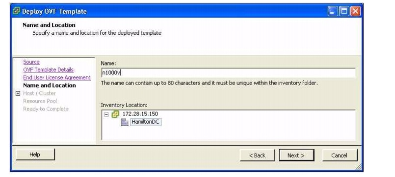 Add the VSM name, select the folder location within the inventory where it will reside, and click Next. The name for the VSM must be unique within the inventory folder and less than 80 characters in length.