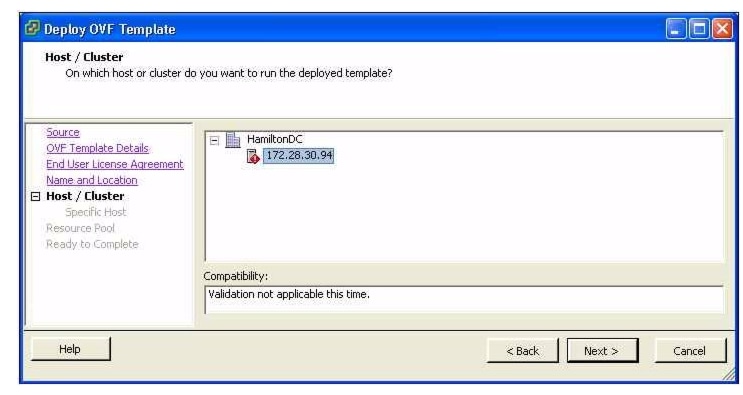 Choose the host or cluster on which to install the VSM and click Next.