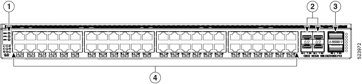 The figure shows the chassis for Cisco Nexus 92348GC-FX3.