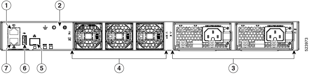 Power supply modules (two—one for operations and one for redundancy [1+1]) with these choices (a mix of AC and DC power sources is supported. However, do not mix airflow directions):