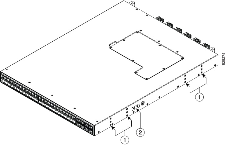 If the switch has port-side intake airflow (burgundy coloring for fan modules), locate the ports in the cold aisle. If the switch has port-side exhaust airflow (blue coloring for fan modules), locate the ports in the hot aisle. If you locate the air intake in a hot aisle, the switch can overheat and shut down. |