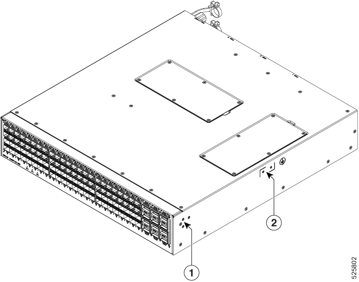 Power supply modules (1 or 2) (DC power supplies shown) with slots numbered 1 (top) and 2 (bottom) |