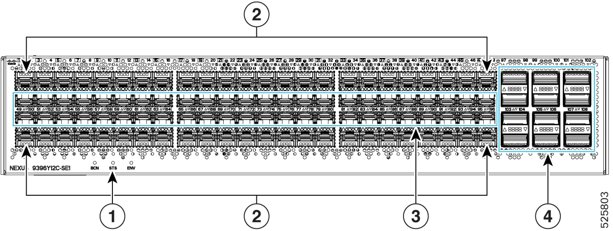 The Cisco Nexus 9396Y12C-SE1 switch (N9396Y12C-SE1) is a 2-rack unit (RU), fixed-port switch designed for Top-of-Rack deployment in data centers. MACsec is supported on all ports. This switch has these ports: