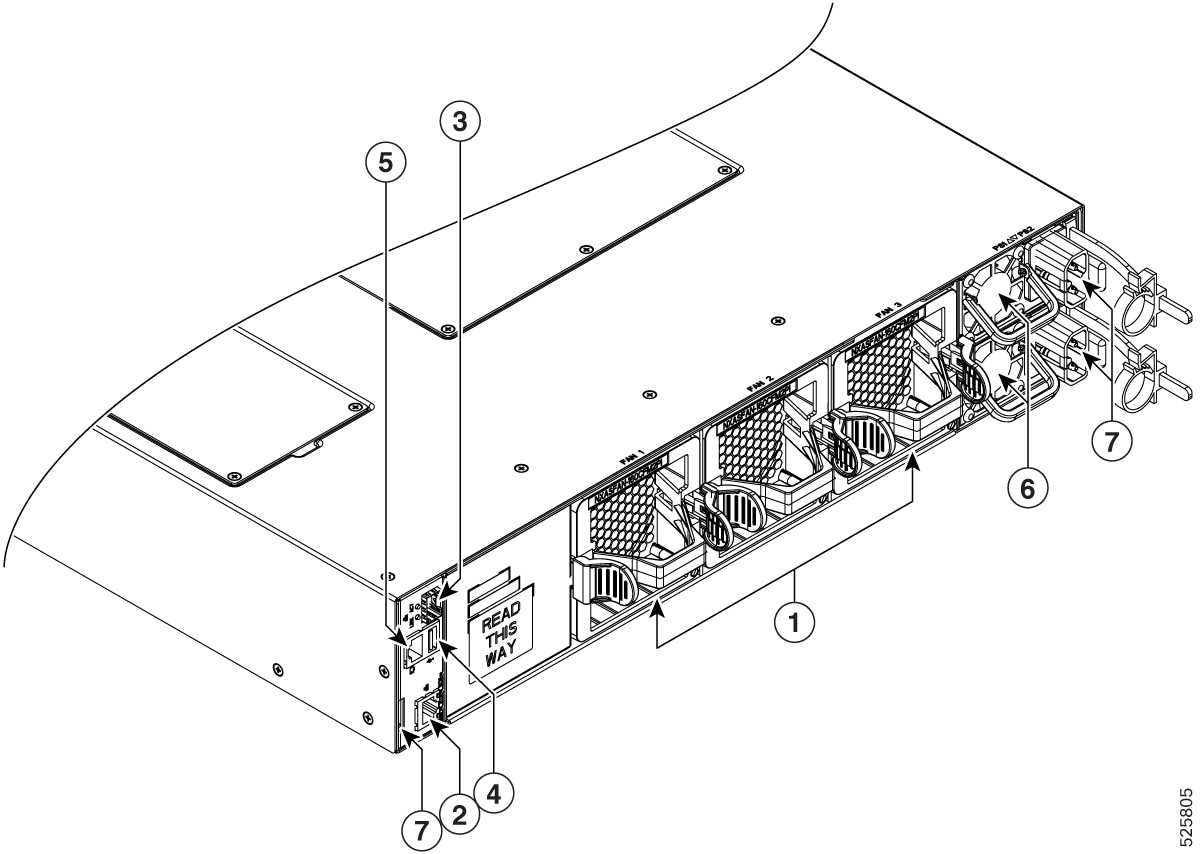 Depending on whether you plan to position the ports in a hot or cold aisle, you can order the fan and power supply modules with port-side intake or port-side exhaust airflow. For port-side intake airflow, the fan and AC power supply modules have burgundy coloring. For port-side exhaust airflow, the fan and AC power supplies have blue coloring.