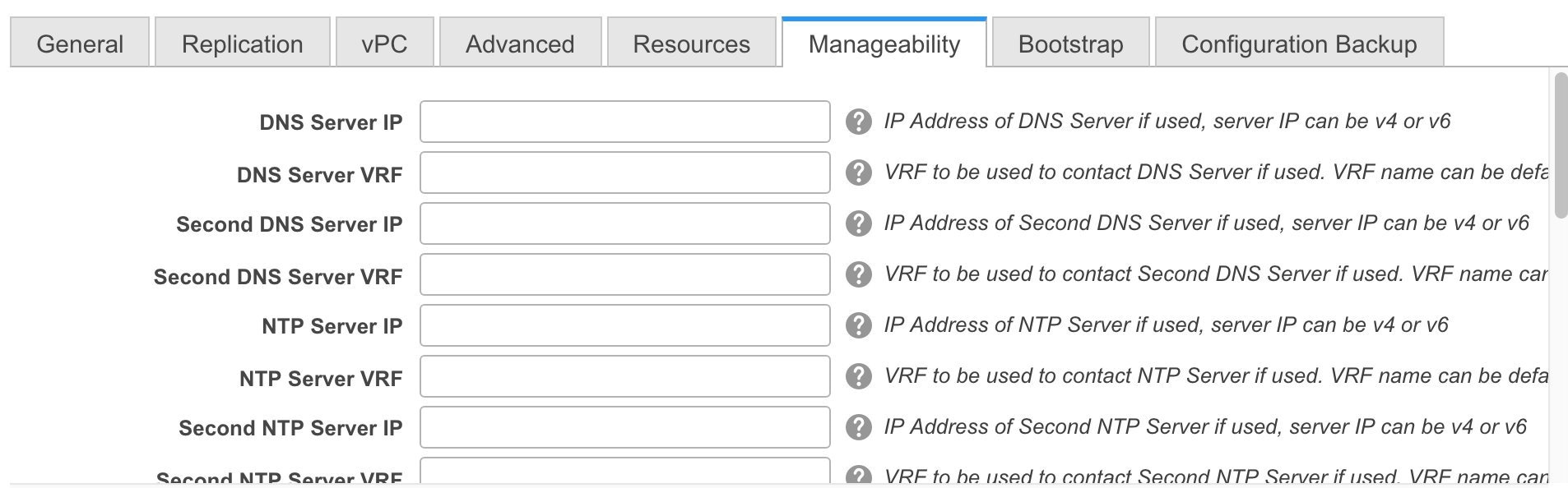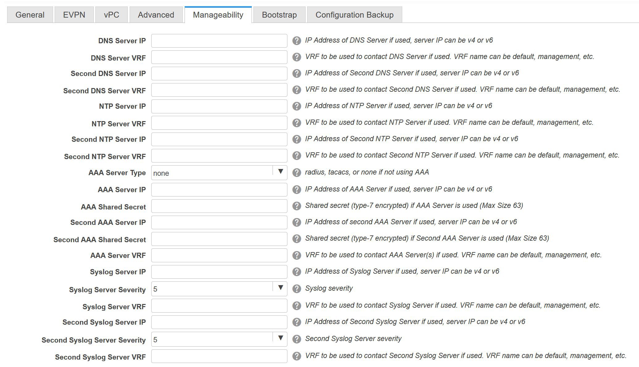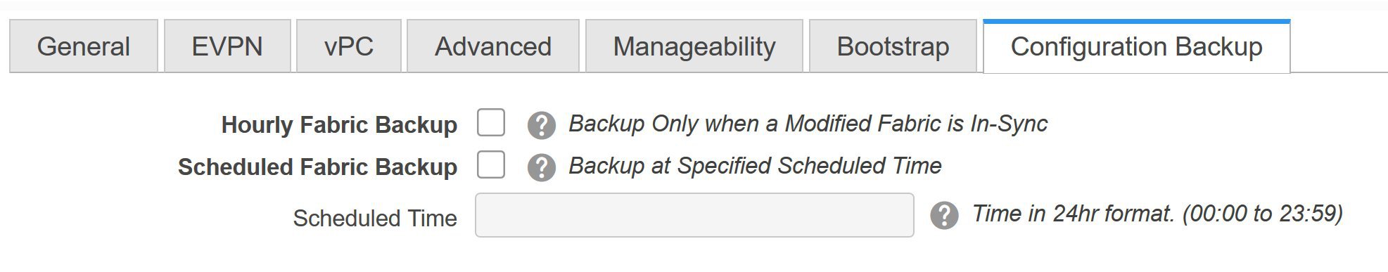 This chapter mostly covers standalone fabric-related configurations. MSD fabric documentation is available in a separate chapter. The deployment of networks and VRFs is covered under the Creating and Deploying Networks and VRFs section. Step by step configuration: