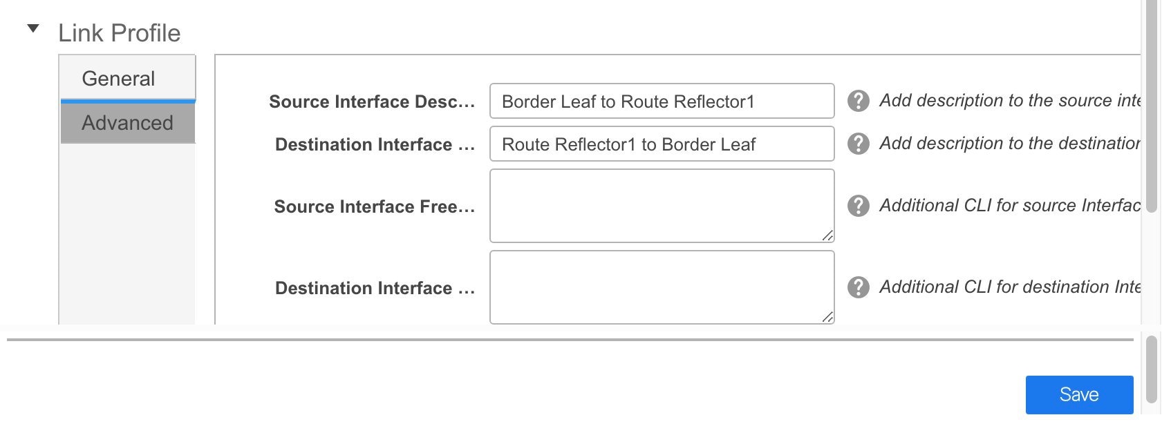 Leaf Freeform Config – In this field, add configurations for all leaf, border leaf, and border gateway leaf switches in the fabric.