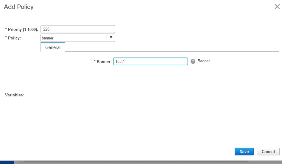 In the Priority field, the priority is set to 500 by default. You can choose a higher priority (by specifying a lower number) for CLIs that need to appear higher up during deployment. For example, a command to enable a feature should appear earlier in the list of commands.