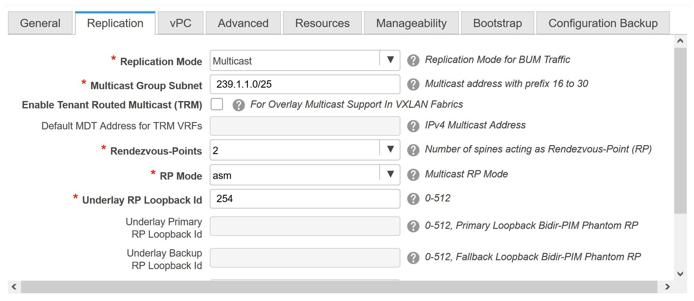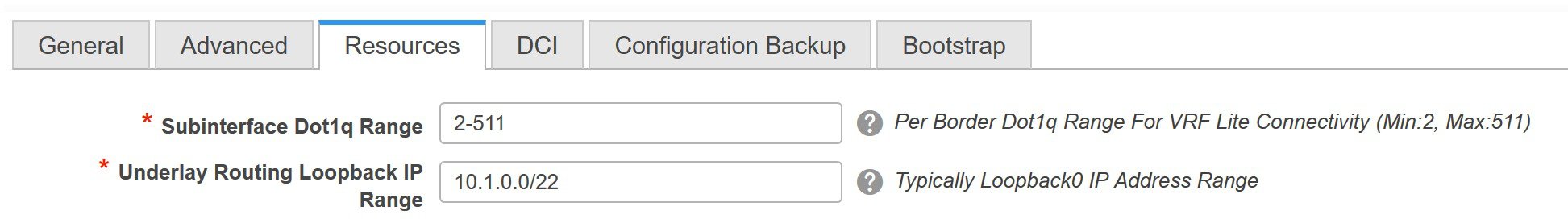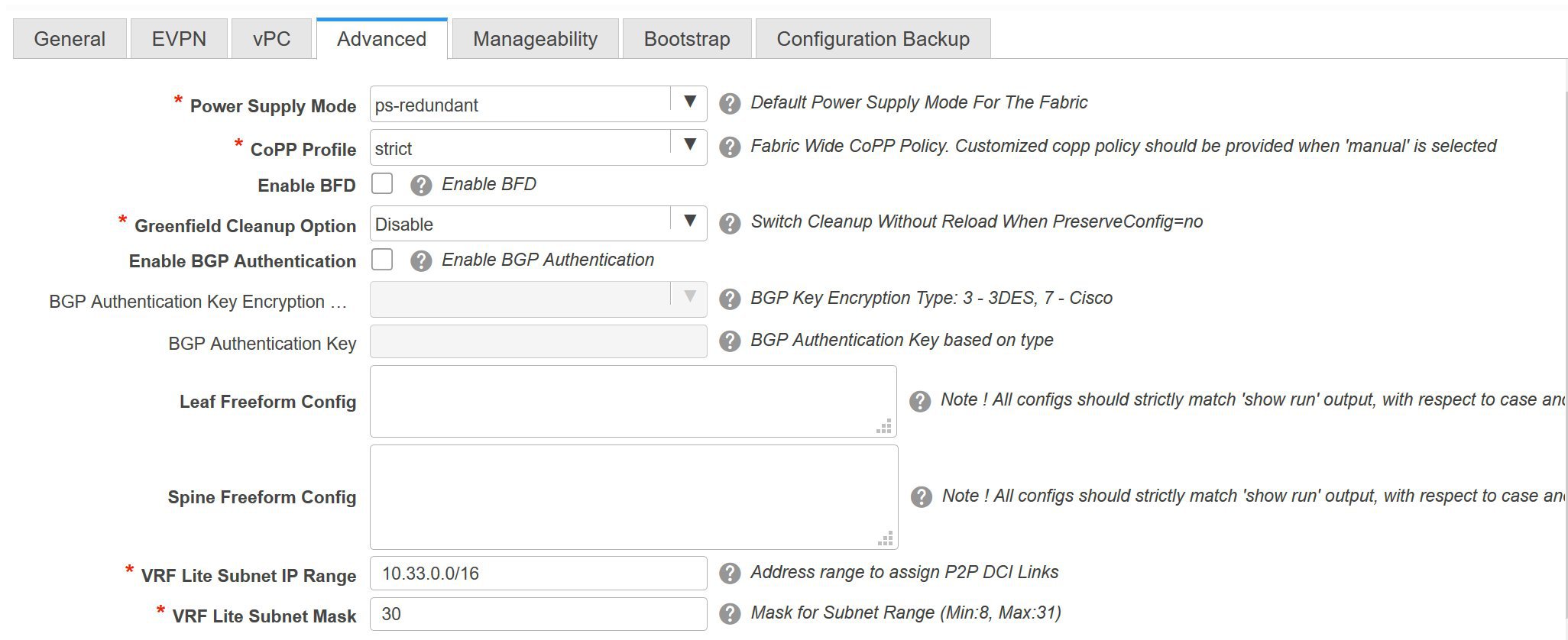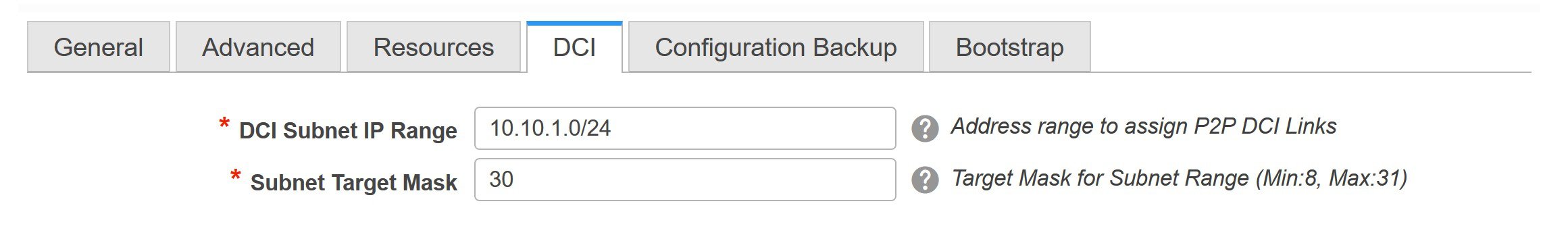 Underlay Subnet IP Mask - Specifies the subnet mask for the fabric interface IP addresses.