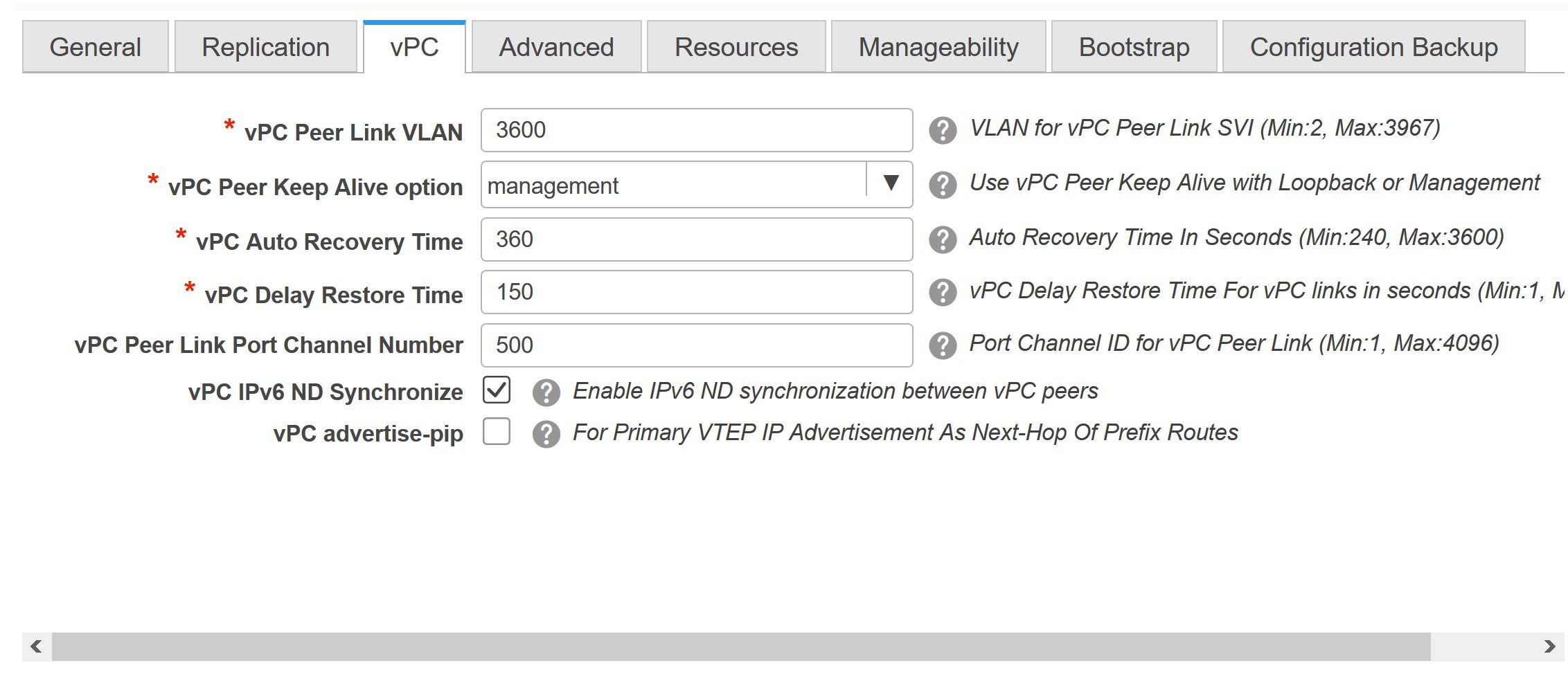 The tabs and their fields in the screen are explained in the subsequent points. The overlay and underlay network parameters are included in these tabs.