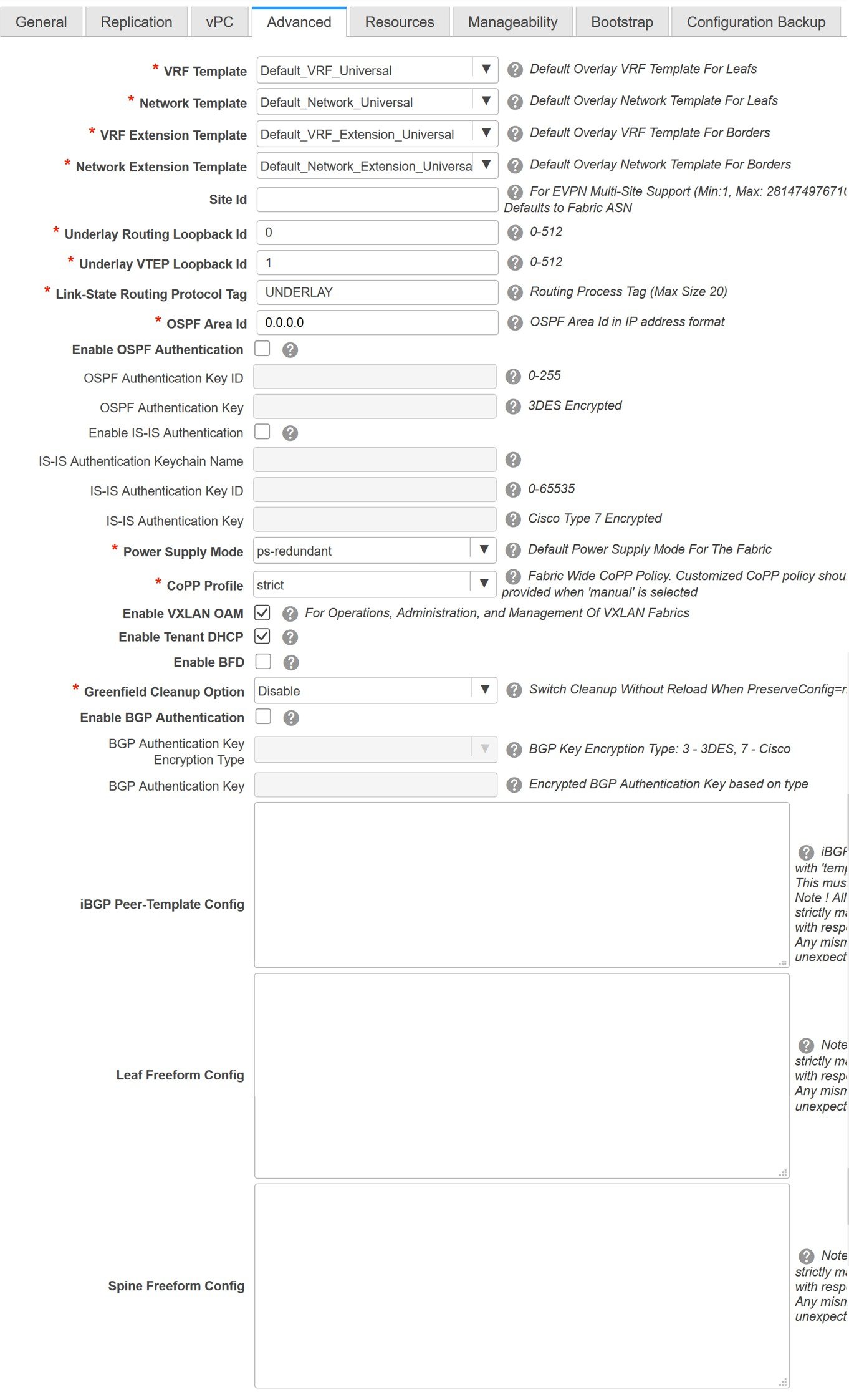 Greenfield Deployments: Applicable for provisioning new VXLAN EVPN fabrics.