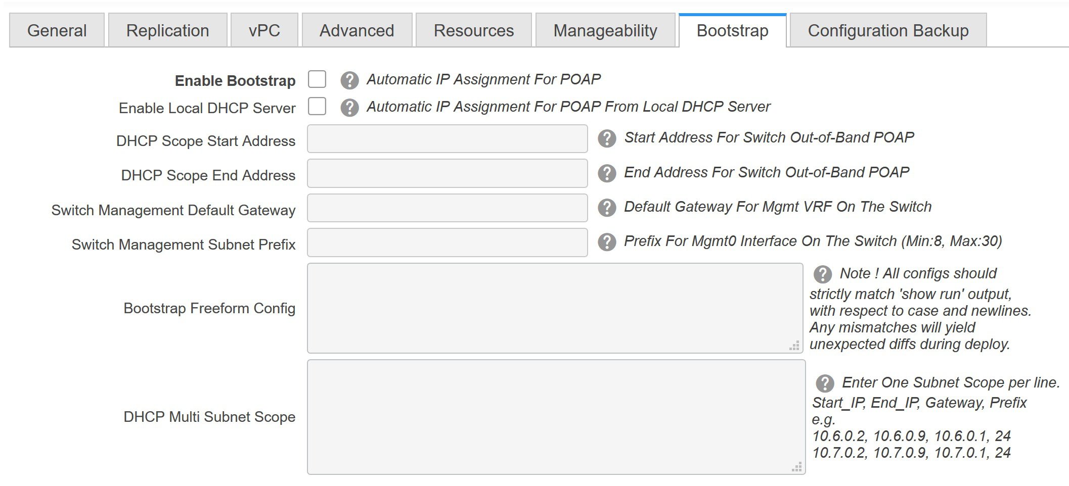 Deploy new fabrics or add new devices to an existing fabric (through the bootstrap or Preserve Config = No options).
