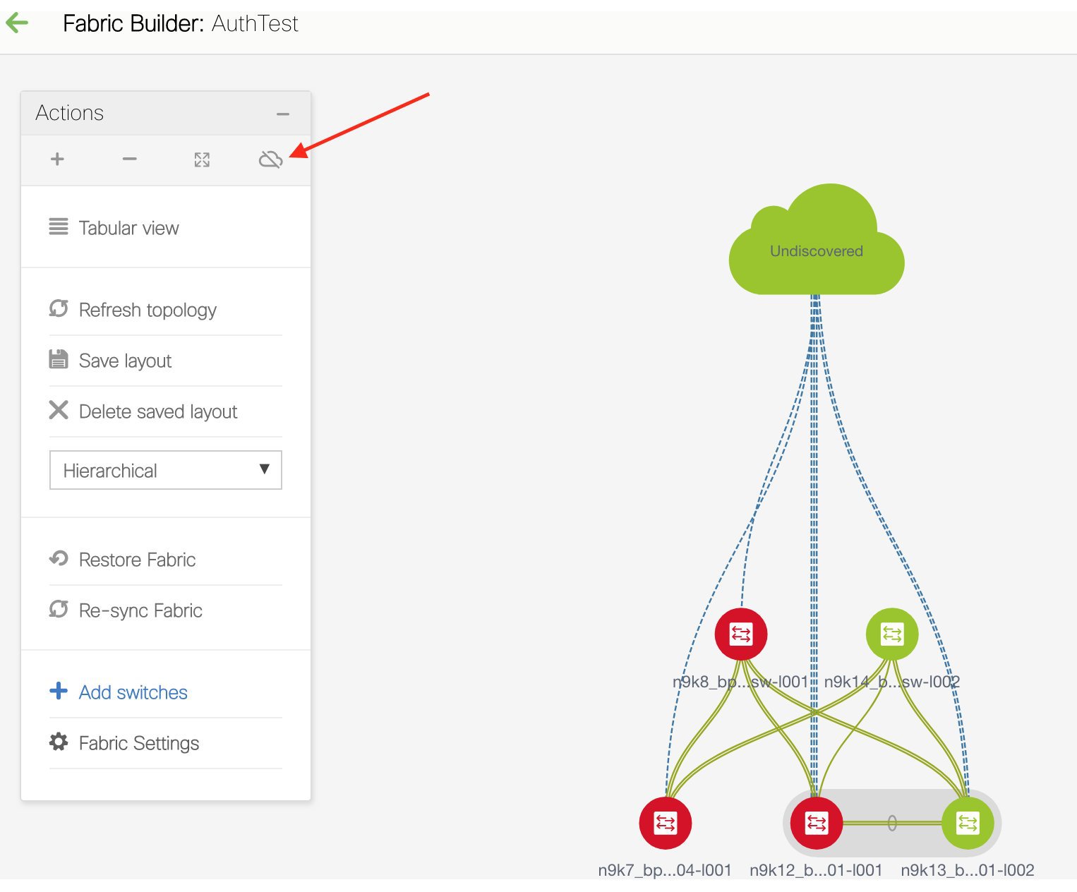Click on the rectangular box that represents the fabric. The Fabric Topology screen comes up.