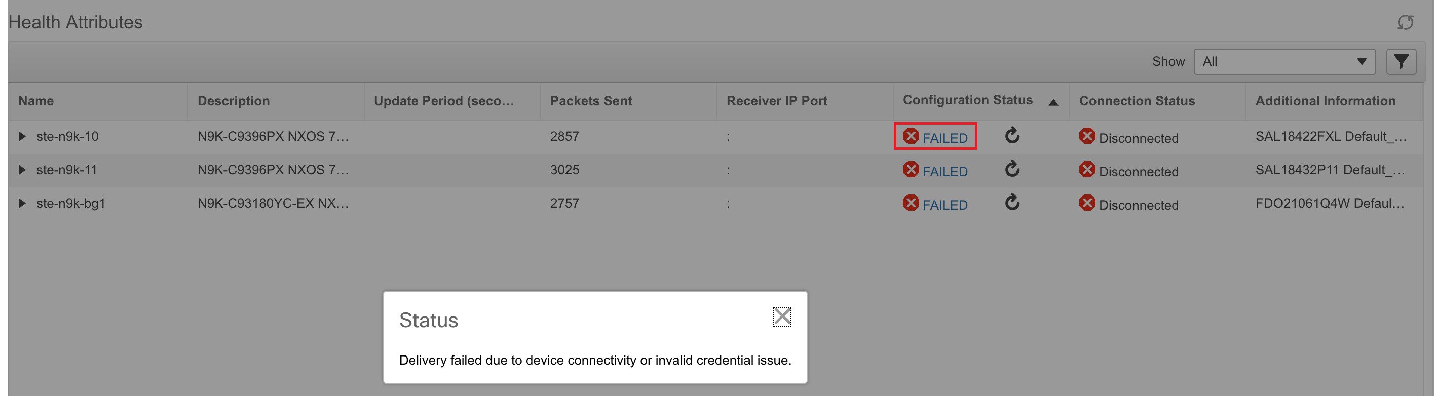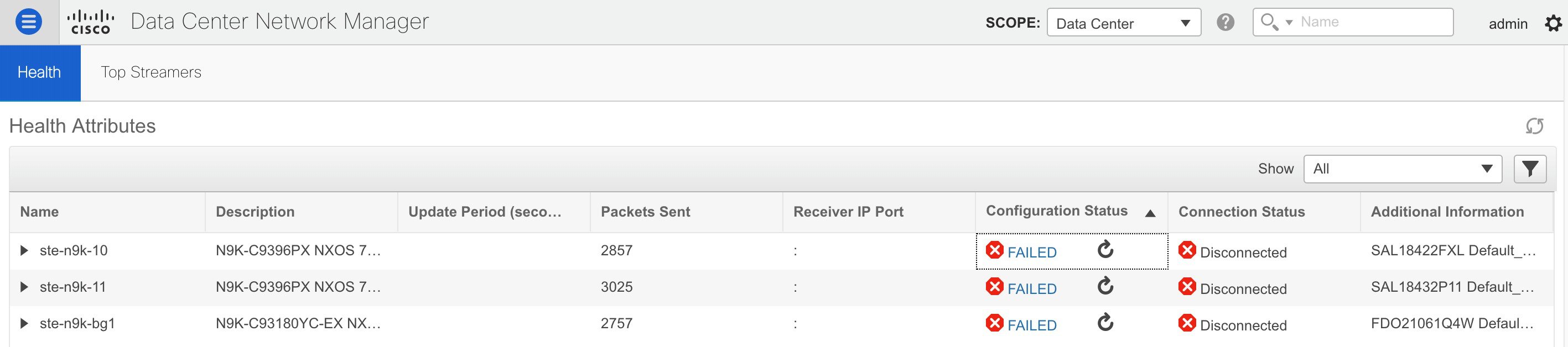 When an invalid command is deployed by DCNM to a device, for example, a command with an invalid key chain due to an invalid entry in the fabric settings, an error is generated displaying this issue. This error is not cleared after correcting the invalid fabric entry. You need to manually cleanup or delete the invalid commands to clear the error.