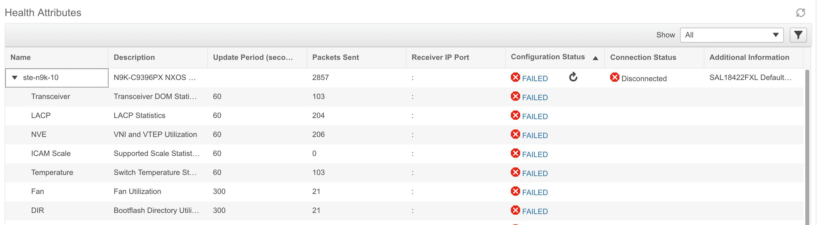 Incomplete Configuration Compliance - On some Cisco Nexus 9000 Series switches, in spite of configuring pending switch configurations using the Save & Deploy option, there could be a mismatch between the intended and switch configuration. To resolve the issue, add a switch_freeform policy to the affected switch (as explained in the Deploy Freeform CLIs on a Specific Switch section). For example, consider the following persistent pending configurations: