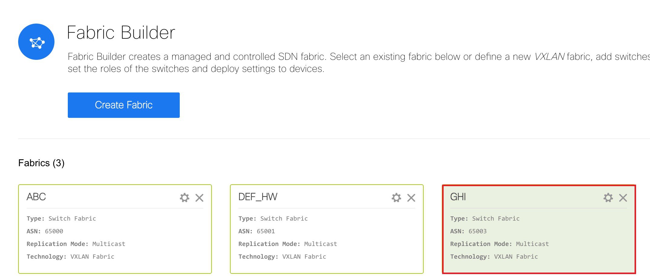 If you are creating a standalone fabric as a potential member fabric of an MSD fabric (used for provisioning overlay networks for fabrics that are connected through EVPN Multi-Site technology), then browse through the Multi-Site Domain for VXLAN BGP EVPN Fabrics topic before member fabric creation.