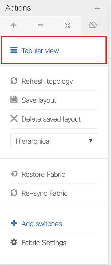 Select Control>Fabric Builder, click Tabular View, and select a switch in the Name column or select Control>Fabric Builder and right-click on the device.