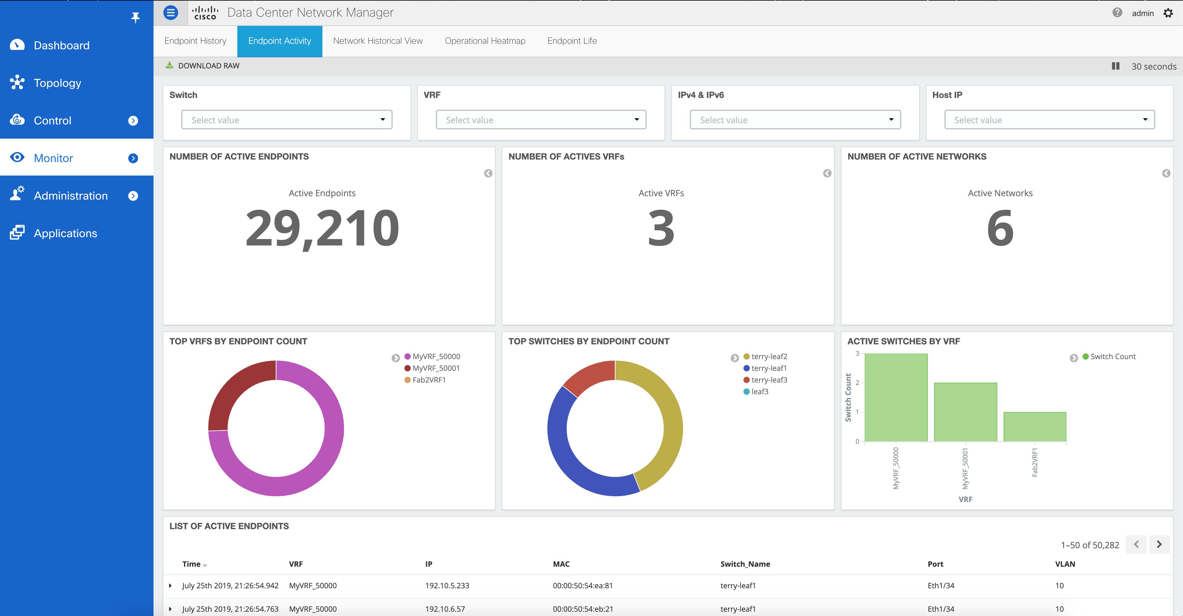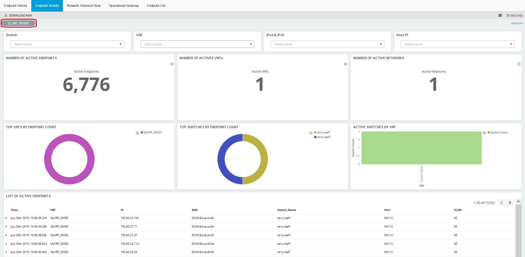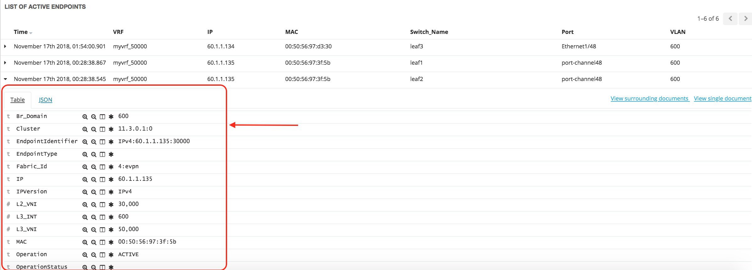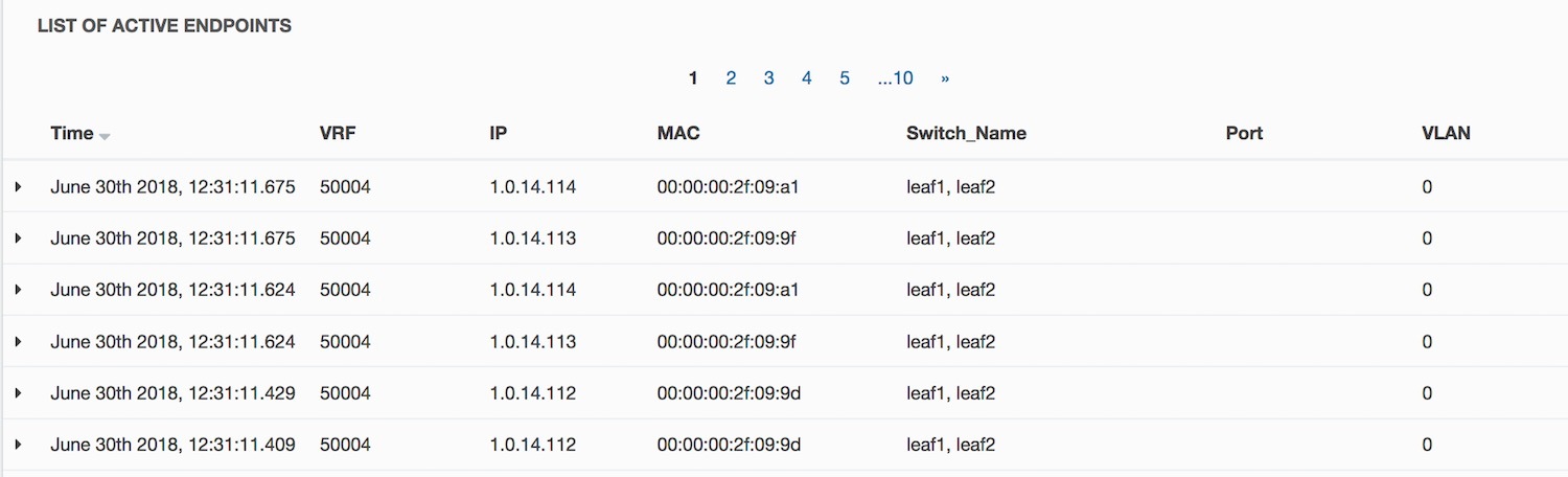 To view VXLANs, choose Monitor > Inventory > View > Switches, and then click a switch name in the Device Name column.