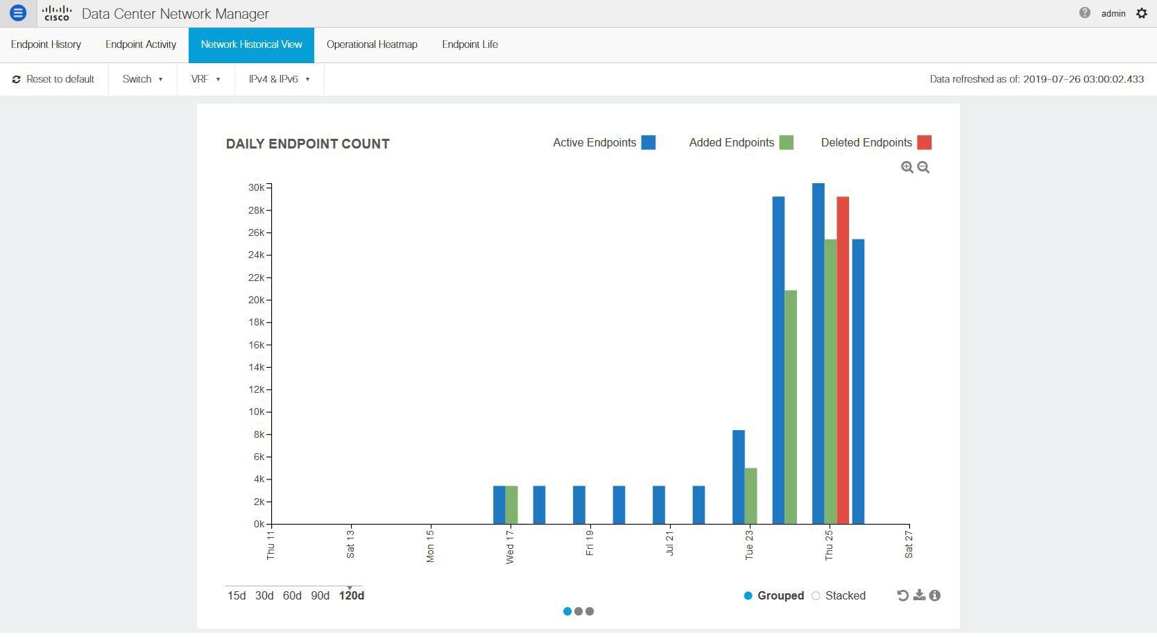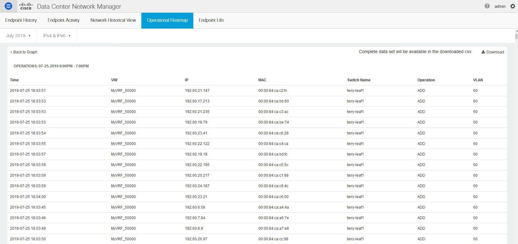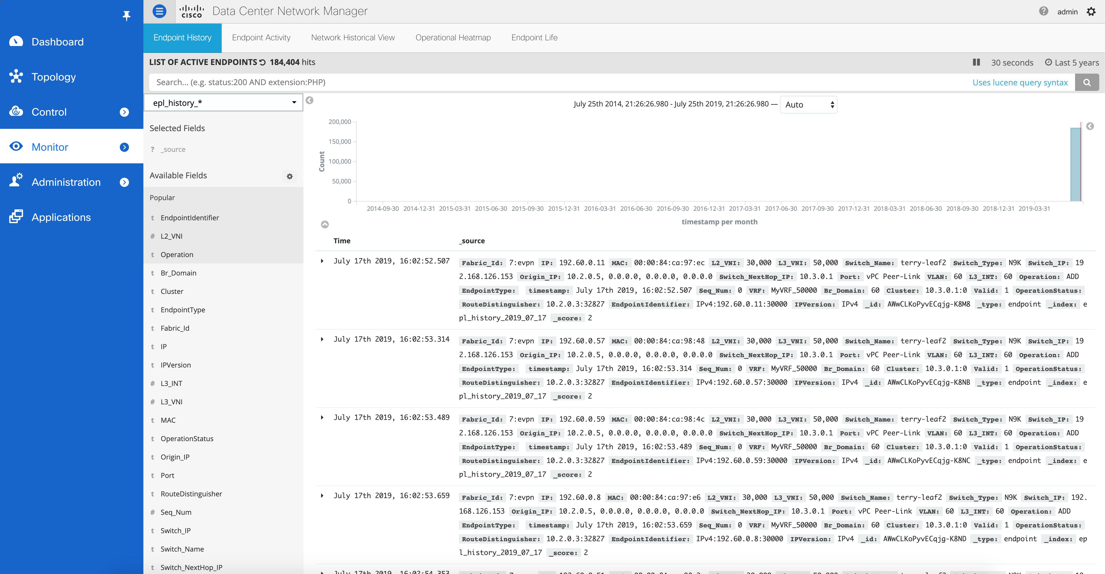 To view the Hosts tab, choose Monitor > Inventory > Switches, click a switch name in the Device Name column, and navigate to the Hosts tab.