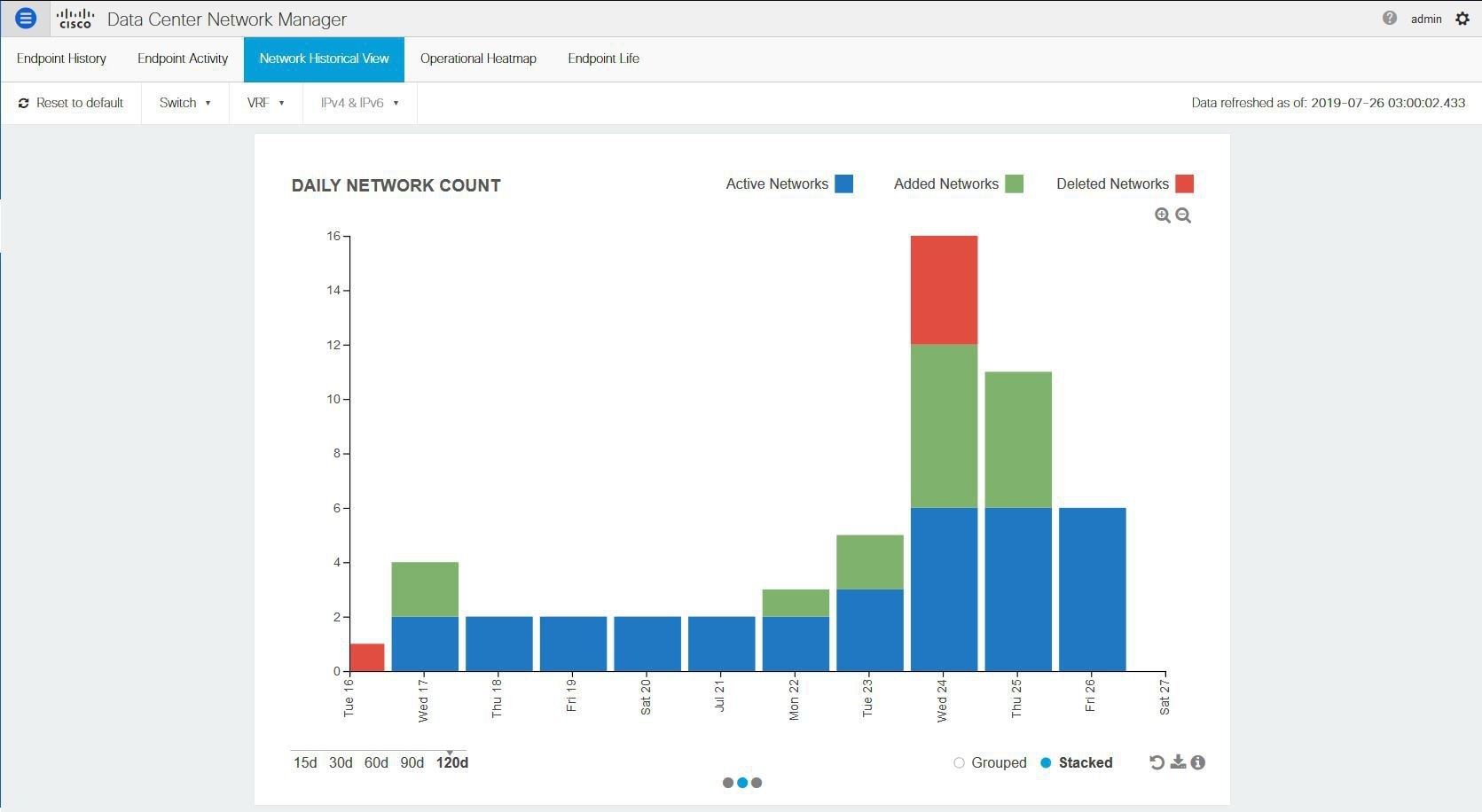 To view the Capacity tab, choose Monitor > Inventory > Switches, click a switch name in the Device Name column, and navigate to the Capacity tab.