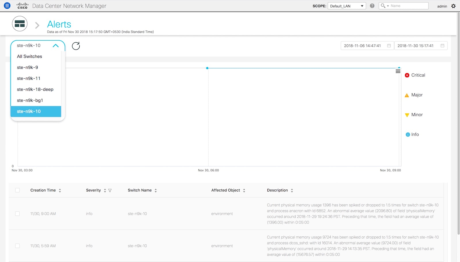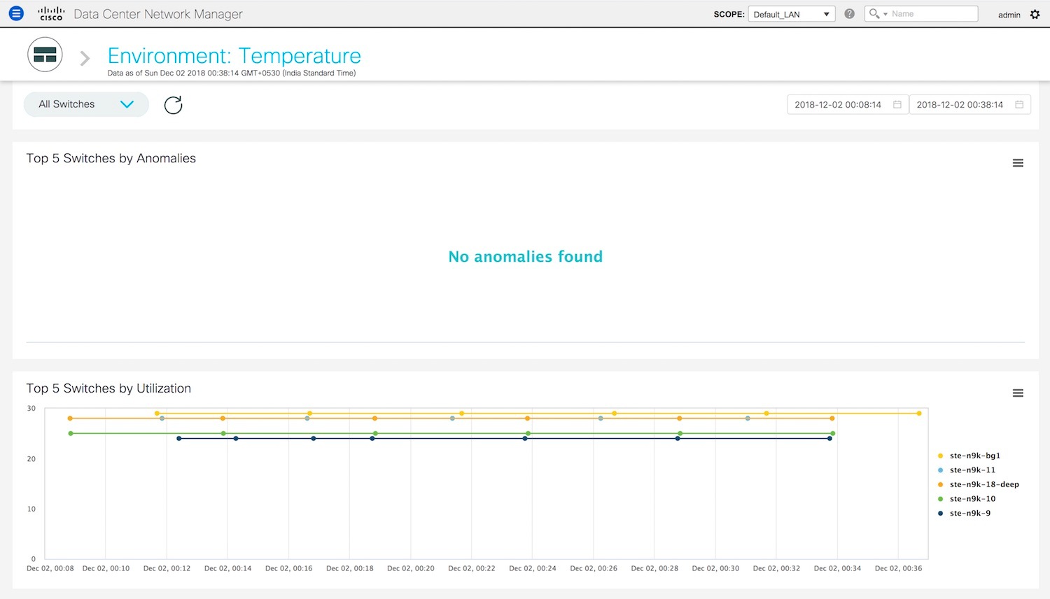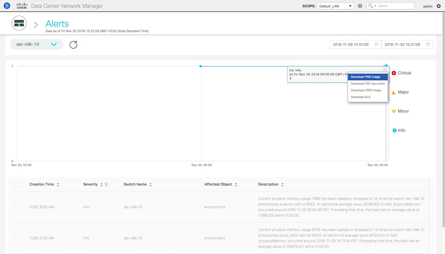 Click Health to access the Health score window for a device. The Health score window includes health score calculation and health trend. The Overview tab displays the overall health score. All the modules, switch ports and alarms are taken into consideration while calculating the health score. Hover over the graph under Health Trend for detailed information on specific dates. Hover over the info icon next to Alarms to display the number of Critical, Major, Minor, and Warning alarms that have been generated. ![]() Click the Modules tab to display information about the various modules in the device. This tab displays information such as Name, Model name, Serial number, Status, Type, Slot, Hardware revision and Software revision. ![]() Click the Switch Ports tab to display information about the device ports. This tab displays information such as Name, Description, Status, Speed, and the device to which a port is connected . ![]() Click the Alarms tab to display information about the alarms that have been generated. This tab displays information such as alarm Severity, Message, Category, and the Policy that has been activated due to which the alarm is generated. ![]() In the Health column, the switch health is calculated by the capacity manager based on the following parameters:
