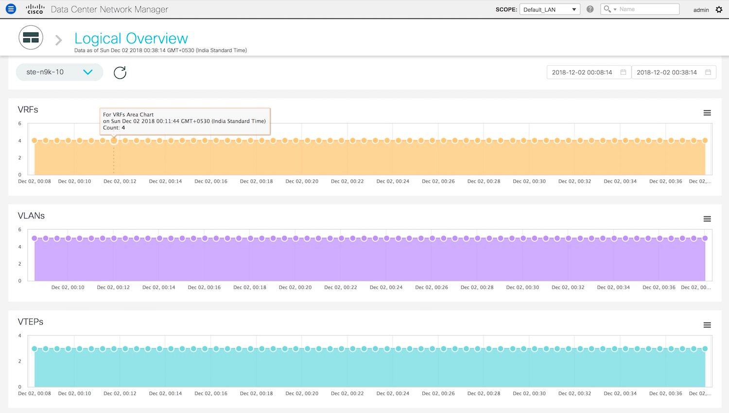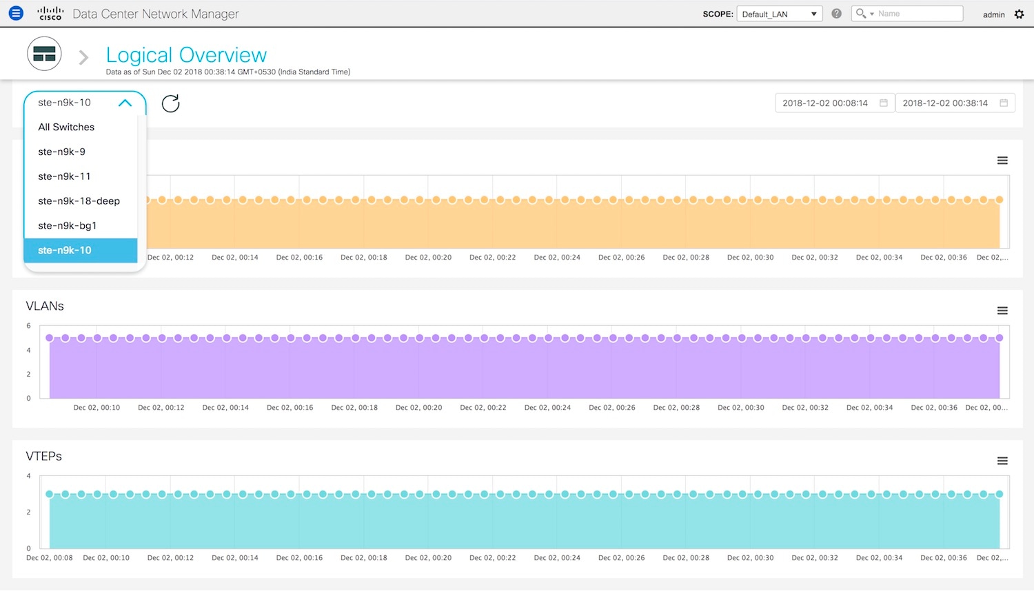 To view VXLANs, choose Inventory > View > Switches, and then click a switch name in the Device Name column.