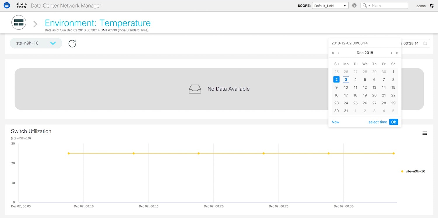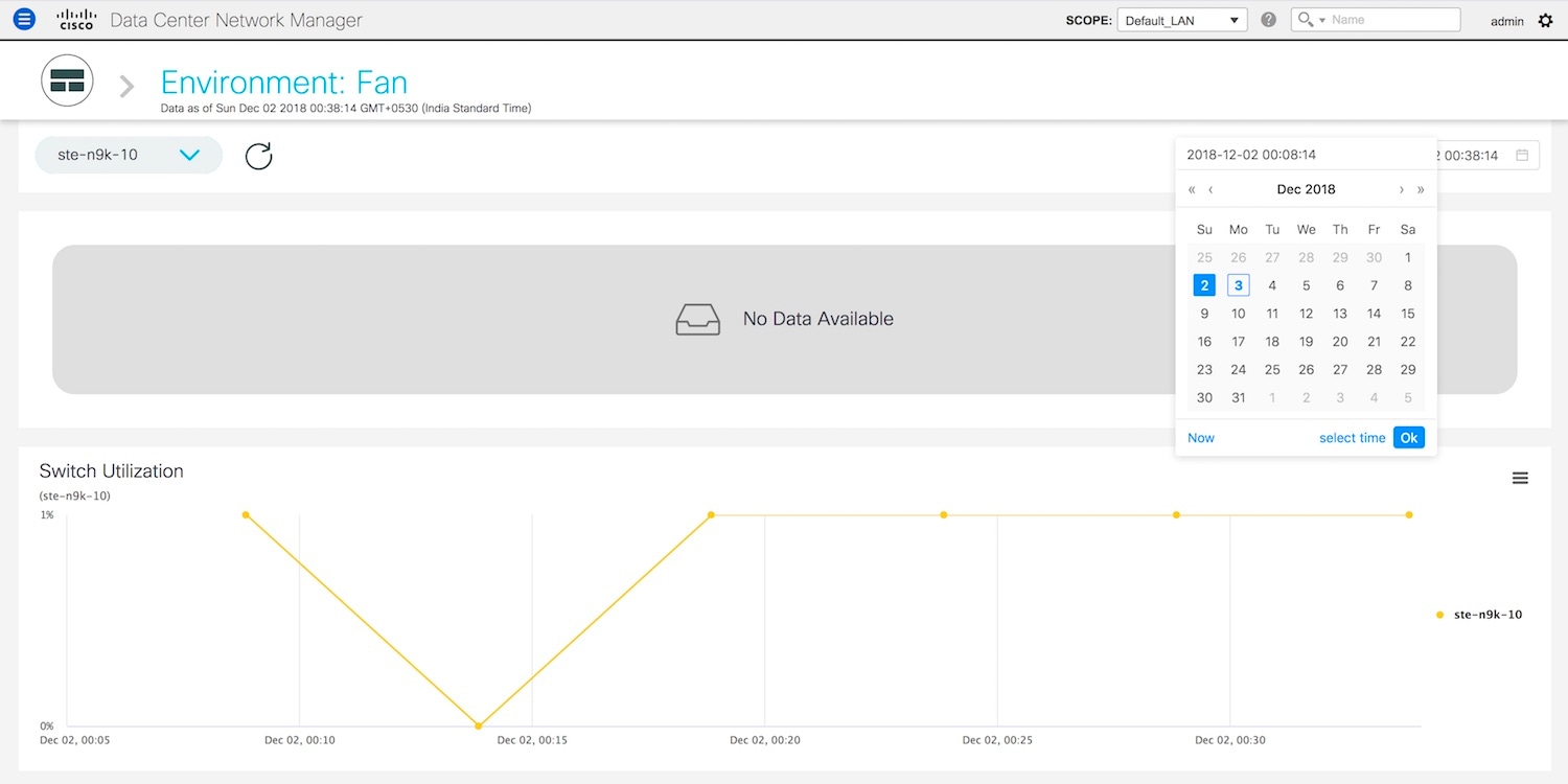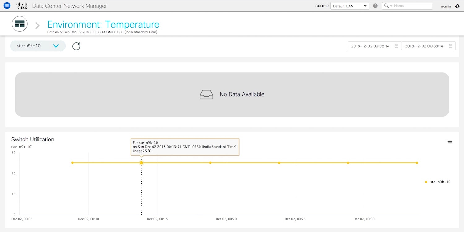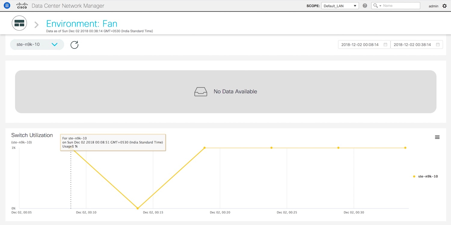 Starting from Cisco DCNM 11.3(1) Release, you can view information about switch health along with the switch summary by clicking on a switch in the Topology window or by choosing Control>Fabrics>Fabric Builder, selecting a fabric and clicking on a switch in the Fabric Builder window. ![]() |