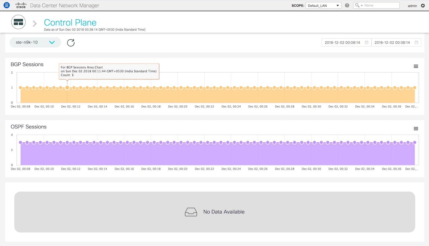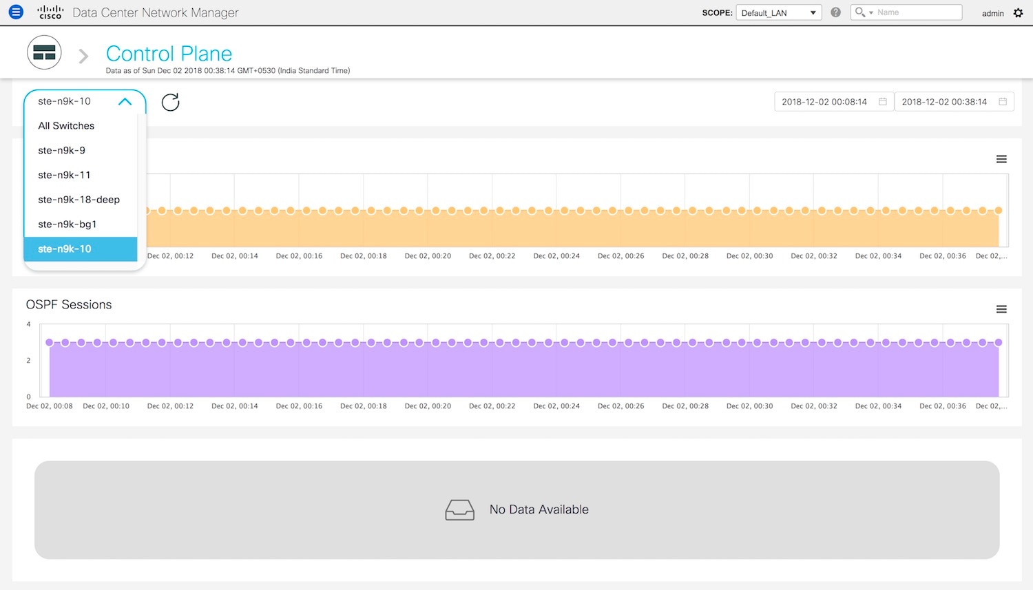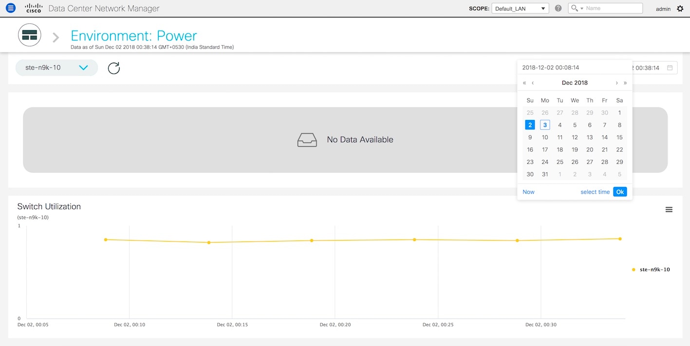 Starting from Cisco DCNM 11.3(1) Release, you can view information about switch health along with the switch summary by clicking on a switch in the Topology window or by choosing Control>Fabrics>Fabric Builder, selecting a fabric and clicking on a switch in the Fabric Builder window. ![]() |