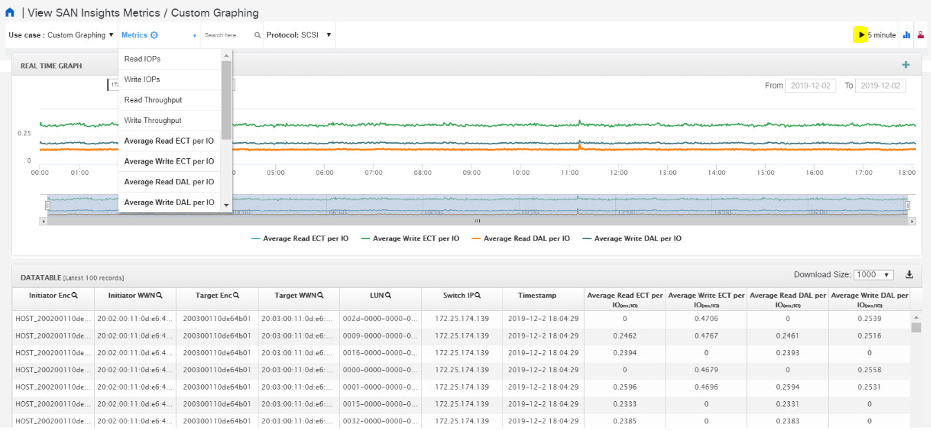view SAN Insights metrics based on two protocols, SCSI and NVMe. By default,