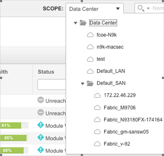 These av-pairs appear on the Cisco DCNM Web UI > Scope drop-down list, based on the user access.