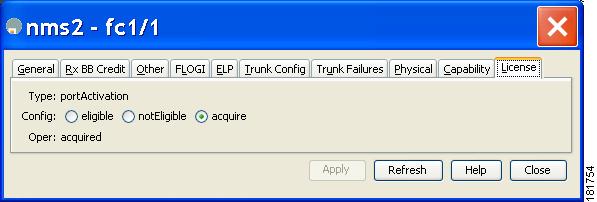 Step 2 Click the acquire radio button to acquire a license for the port.