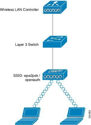 The following figure displays the network diagram for WPA2 PSK and Open Authentication: