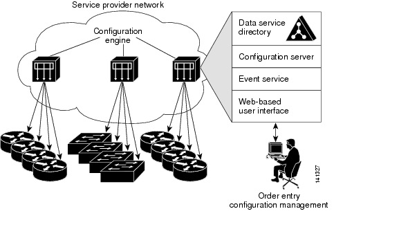 The Cisco Configuration Engine is network management software that acts as a configuration service for automating the deployment and management of network devices and services (see Figure 4-1). Each Configuration Engine manages a group of Cisco devices (switches and routers) and the services that they deliver, storing their configurations and delivering them as needed. The Configuration Engine automates initial configurations and configuration updates by generating device-specific configuration changes, sending them to the device, executing the configuration change, and logging the results.