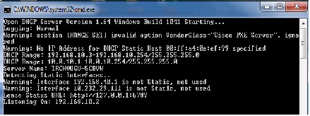 The example uses OpenDhcpServer and Solarwinds TFTP server. Information about configuring both is available on the Internet. The use of both applications here is only meant to serve as an example for configuration, and are not product recommendations.