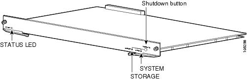 The front panel has no network or peripheral interface for configuration. There are 3 LEDs and a pushbutton for manual shutdown on the front panel. You must shut down the NAM (but need not shut down the entire switch) before removing the NAM from the switch.