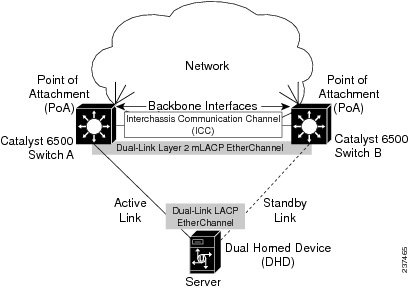 The mLACP for server access feature supports single redundant Layer 2 LACP links from a pair of Catalyst 6500 switches to a server. Figure 20-1 illustrates switches connected to a server.
