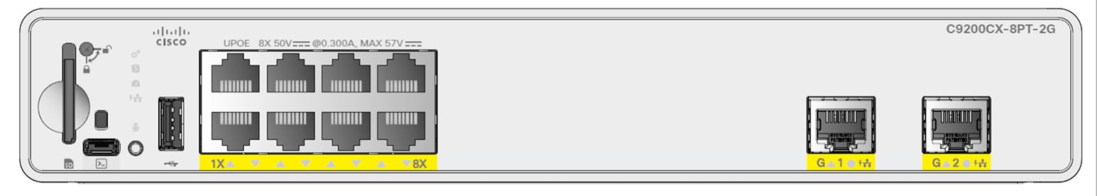 The PD power LEDs indicates the status of the additional LED under the PD port of C9200CX-12T and C9200CX-8PT-2G.