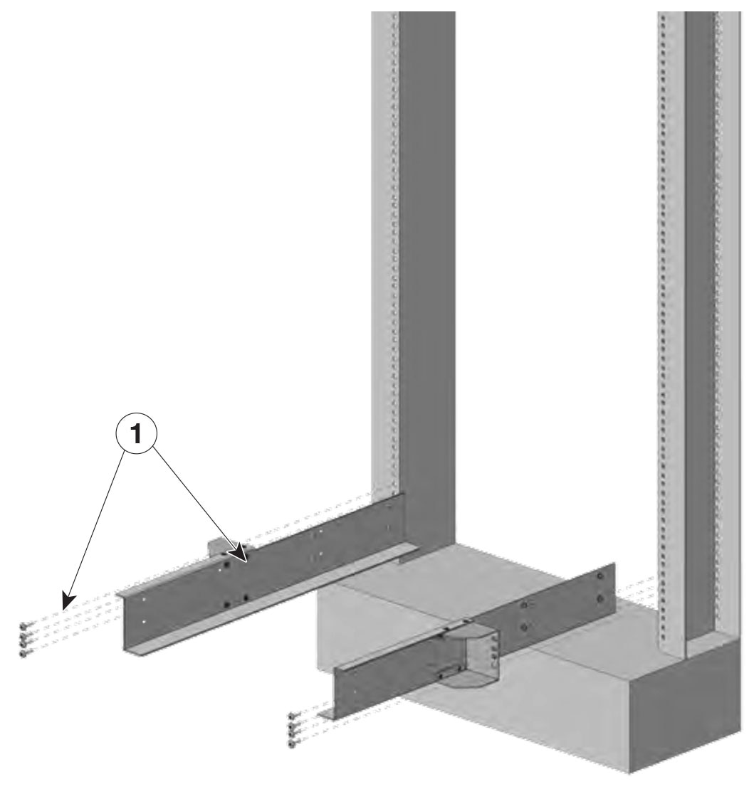 Install the shelf brackets before you install the chassis in the rack to help support the weight of the chassis while you secure the L-brackets to the rack enclosure. You have to mount the shelf brackets from the front and rear.