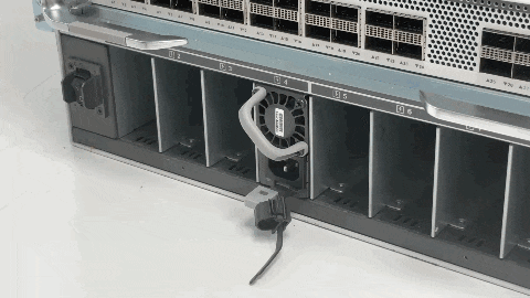 Step 4 | Verify that the power supply is receiving power by checking that the LED is on and is green. For more information about the power supply LEDs and the conditions that they indicate, see Power supply module LEDs. When you first activate the power supply, you can verify the functionality of the LED by checking that LED turns on for a couple of seconds. If the LED is flashing amber or green, check the power connections on the power supply and the power source. |