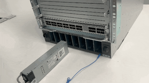 Set the power supply aside and proceed with installing the new or replacement power supply module. Install blank covers in all power supply bays that are to remain empty (C9600-PWR-BLANK). For information about installing blank covers, see Removing and installing power supply blanks.